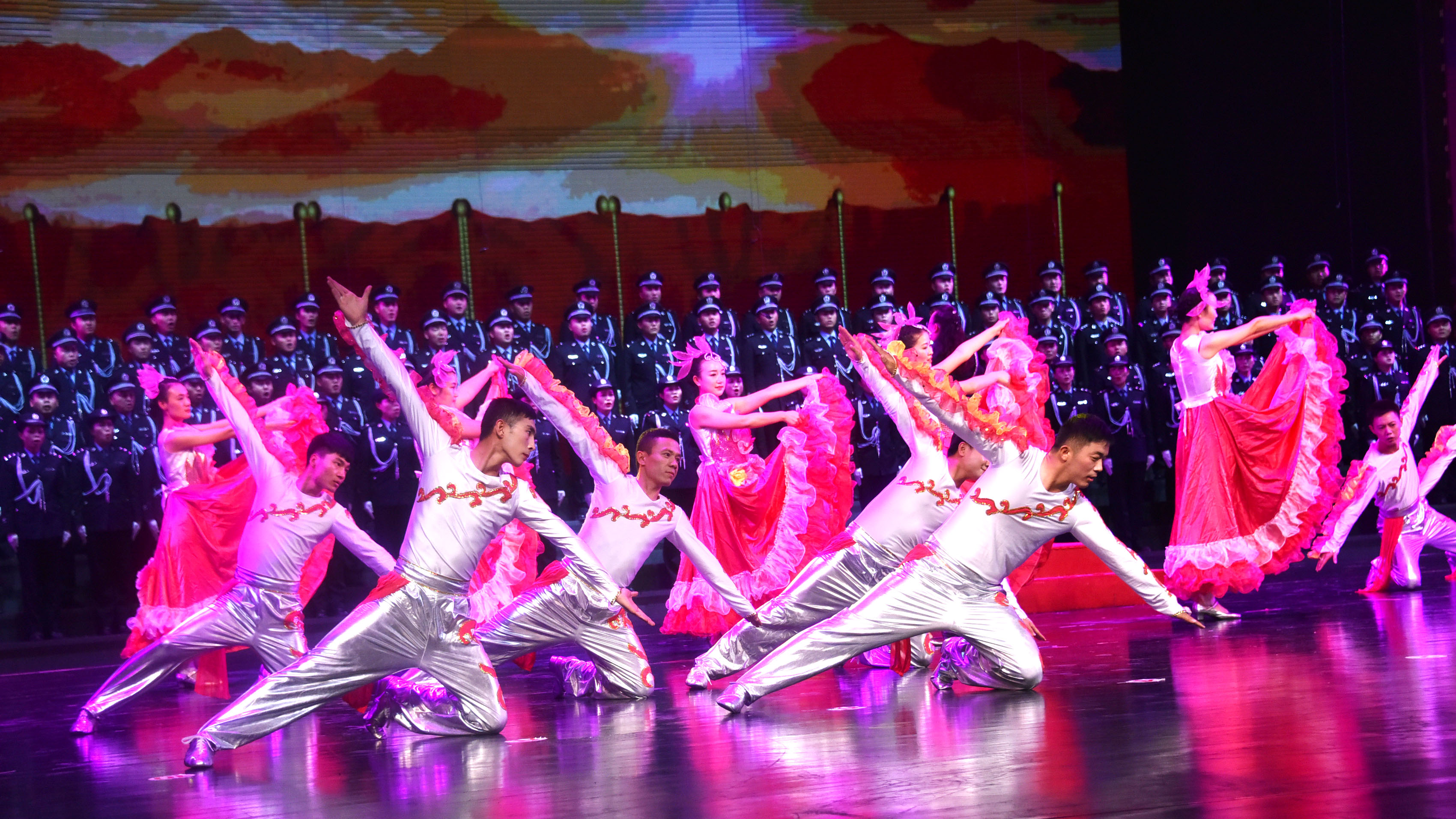 《第一师监狱工作掠影》拉开演出序幕。此次演出分为九个篇章16个曲目。伴随着《当那一天来临》的音乐响起,《旗帜颂》、《前进吧,中国共产党》、《永远跟党走》、《打靶归来》、《共青团员之歌》、《江山》、《我是警察的妻子》等曲目相继亮声,一次次将晚会推向高潮。