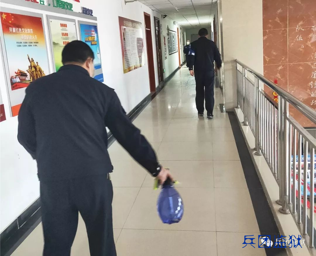 在一线,他总是默默地拎着消毒壶不停的喷撒,总是不厌其烦地给同事们宣传着预防疫情的小妙招,总是装备齐全地在那里守护着监狱安宁……