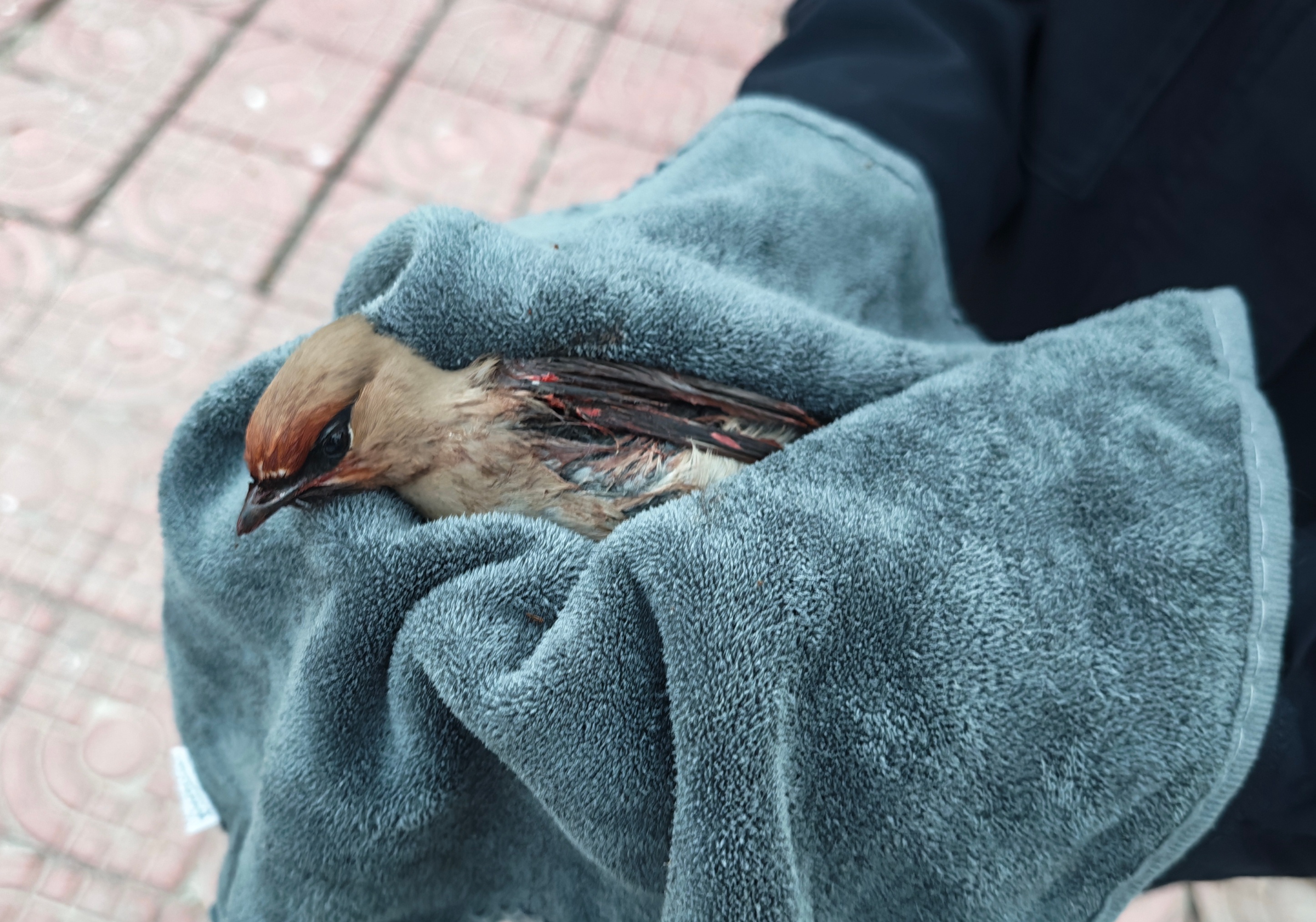 赵振雨立刻放缓脚步,循声望去,只见一只太平鸟羽翼受损、行动无力,急需救助。为避免小鸟受到二次伤害,他小心翼翼地用随身携带的干净毛巾将其轻轻包裹,为它营造安全温暖的临时庇护环境。同时,向单位领导汇报情况后,立即驱车前往第八师142团派出所。一路上,他时刻关注太平鸟的状况,抵达派出所后,详细向工作人员讲述发现太平鸟的经过、小鸟的身体状况等,将这只珍贵的“空中精灵”妥善移交。